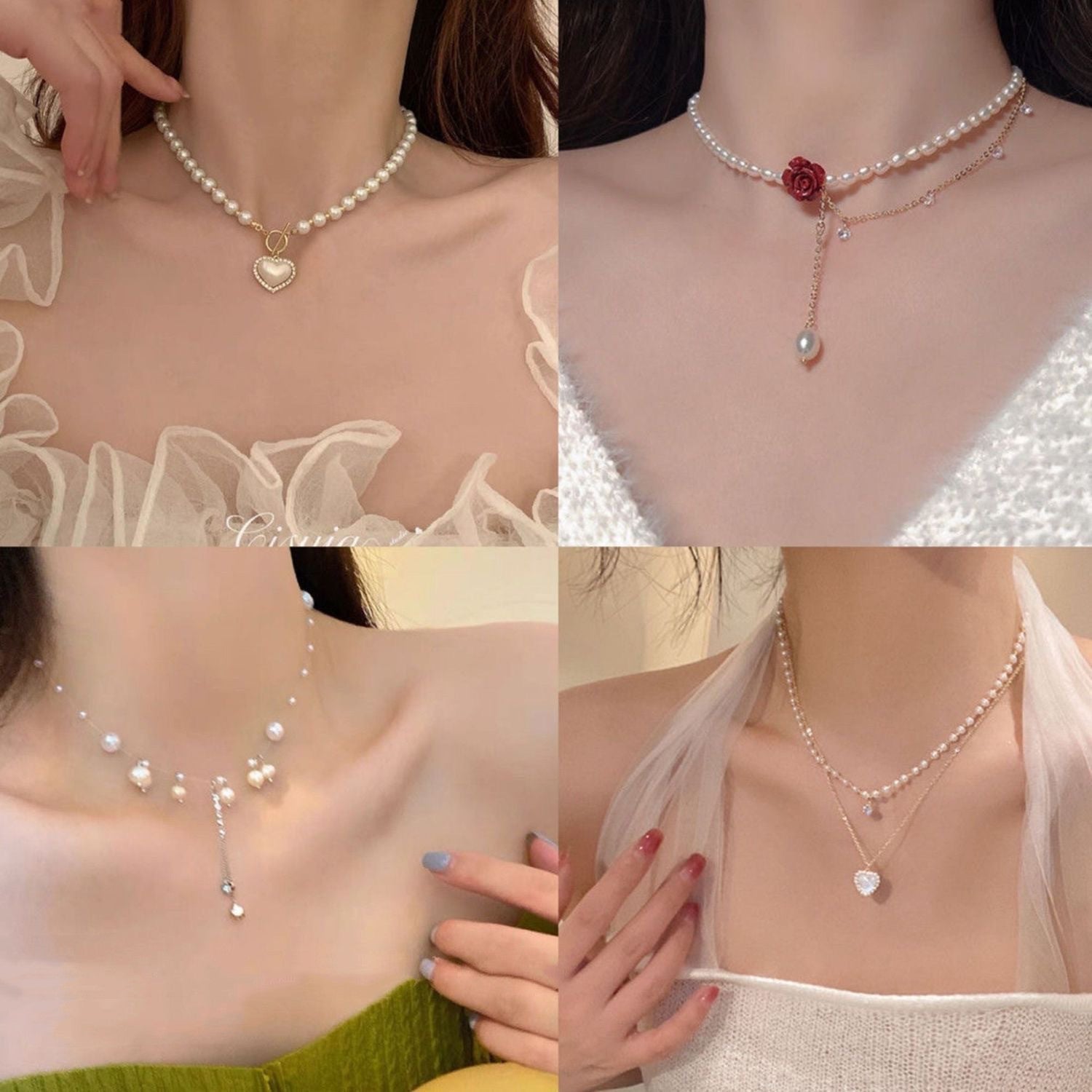Color: mermaid's tears necklace ML-231,love pearl necklace ML-77,red rose necklace ML-232,pearl double love necklace ML-158